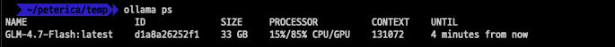 ㅇ ollama ps 명령어로 프로세스 확인시 사용량을 확인할 수 있다.