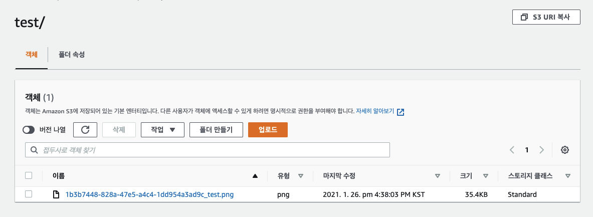 두번째 이유는 보안적인 이유인데, 단지 개발용 S3에만 국한되는 이유입니다. S3가 외부에 모두 오픈된 상태이기 때문에 UUID가 없을 경우 파일 이름을 통해 쉽게 S3에 저장된 파일에 쉽게 접근할 수 있기 때문입니다. 버켓의 경로는 prefix로 정해져 있기 때문에 무분별한 접근을 막을 수 있도록 UUID를 적용하는 것이 좋습니다.