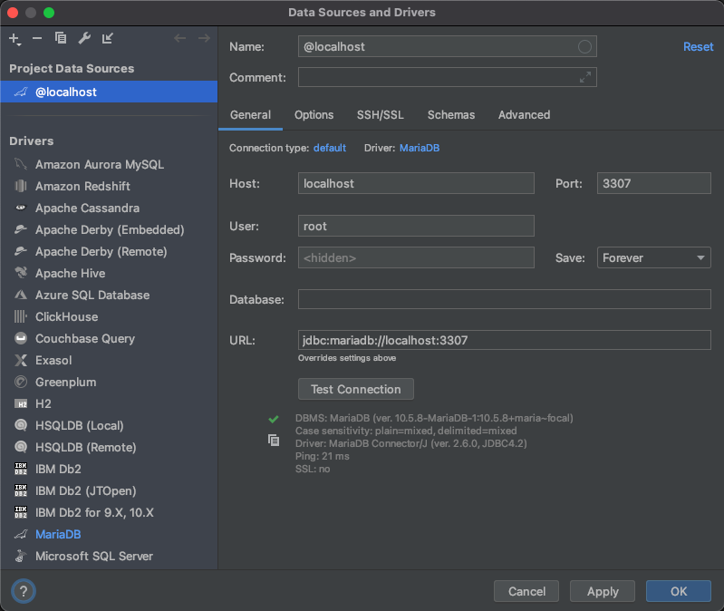 Apple Mac mini m1을 구입하여 개발환경을 세팅하고 있습니다. 개발용 MariaDB를 설치합니다.