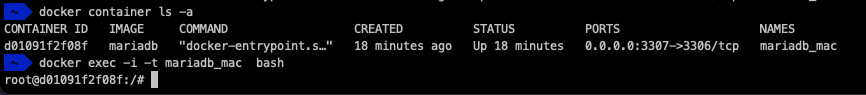 docker exec -i -t mariadb_mac bash
