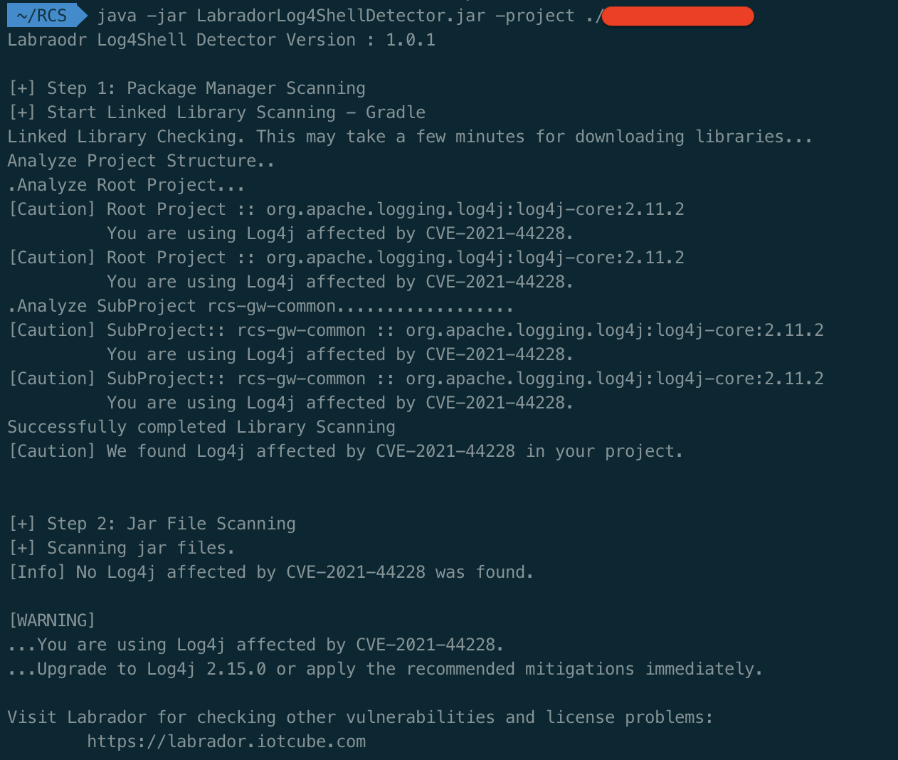 - 취약점 도구 : Labrador Log4Shell 코드 레벨 점검 도구
