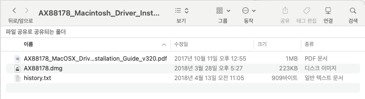 1. AX88178_Macintosh_Driver_Installer_v2.3.0.zip 파일을 다운 받아 압축을 해제한다.