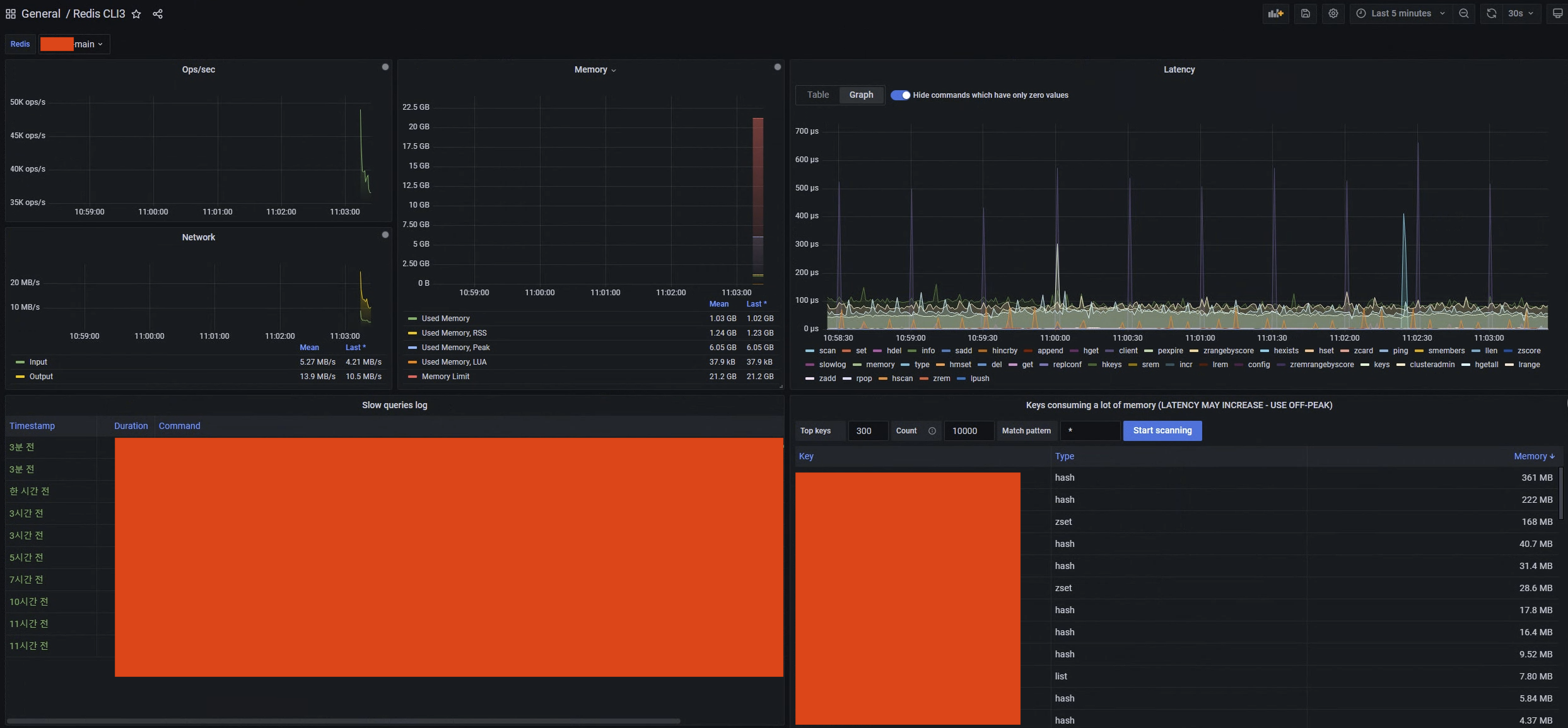 - Grafana의 UI상에서 Redis command를 직접 입력할 수 있다.
