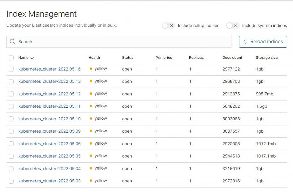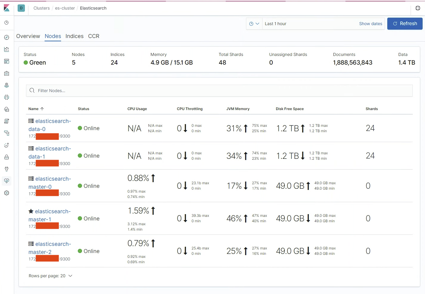 ㅇ 모든 컨테이너들의 로그를 처리하고 있어서 트래픽이 높아지면 elasticsearch의 부하도 함께 증가하기 때문에 모니터링이 필요하다.