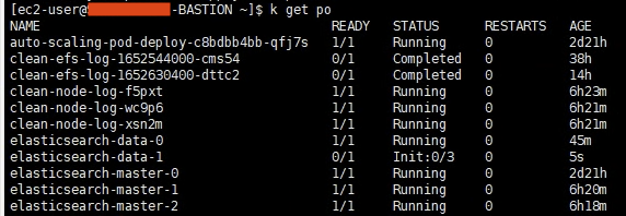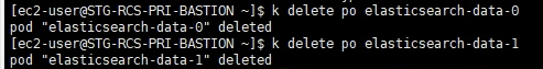 ㅇ kubectl logs elasticsearch-data-1 명령을 통해 내부 로그를 확인하였다.