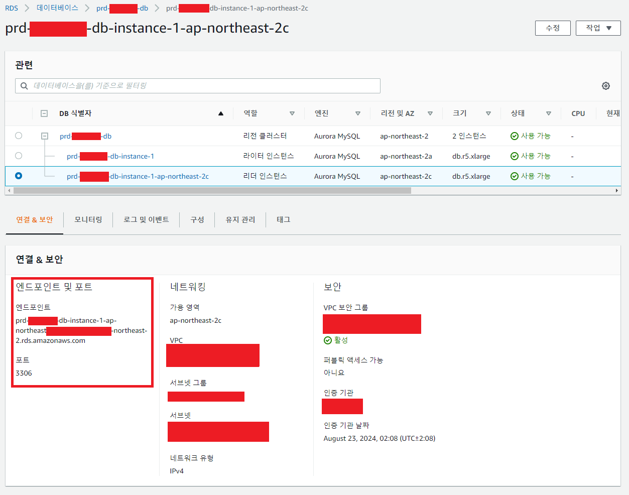 ㅇ 디비 접속 정보에 고유 엔드포인트를 통해 접근할 경우 현재 인스턴스의 역할을 반드시 확인을 해야만 한다.