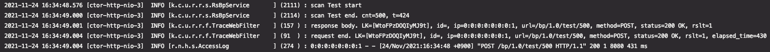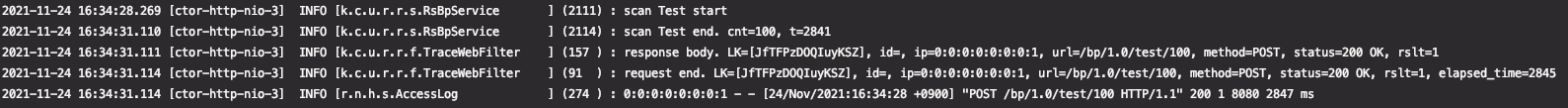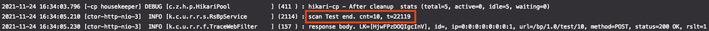 ㅇ scan 조회 시 cnt를 동적으로 주어 처리 속도를 로그에 기록하도록 하였다.