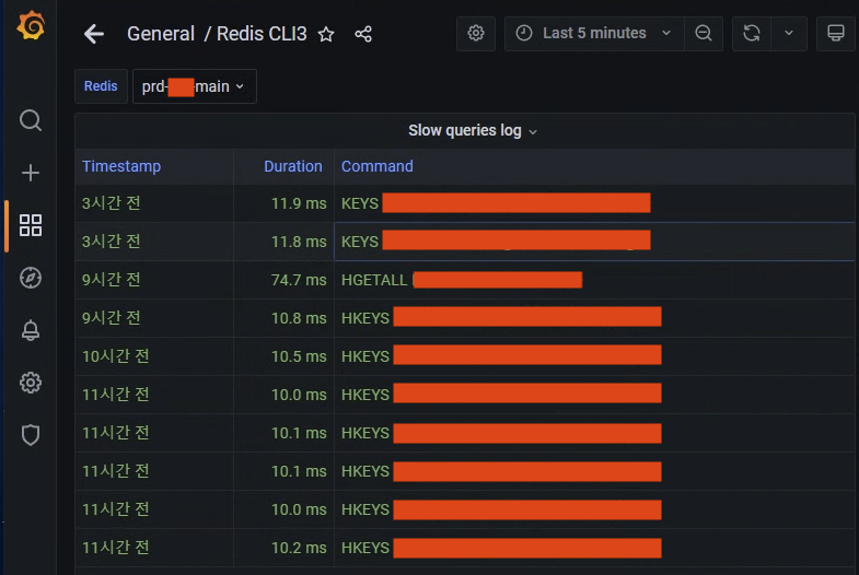 Redis slowlog를 모니터링하는 중 KEYS가 롱쿼리로 감지되어,