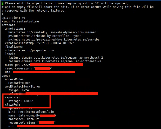 ㅇ kubectl edit pv pvc-25225~~