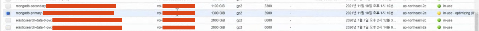 몽고디비 작업에 데이터를 저장하는 로직에 지연이 발생하여, 결국 몽고디비 볼륨을 증설해야 했다.