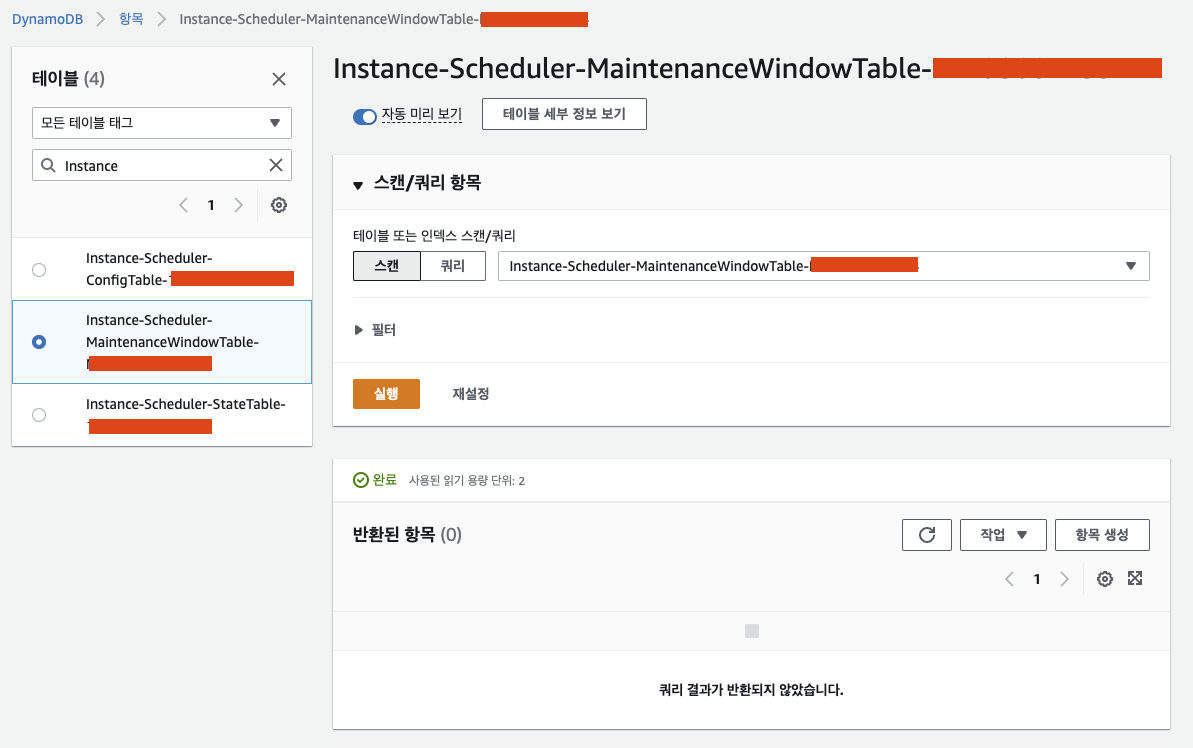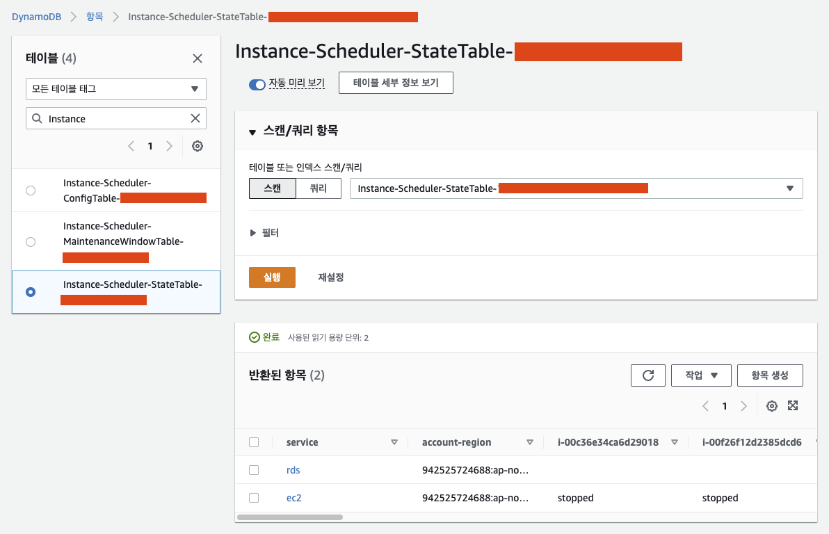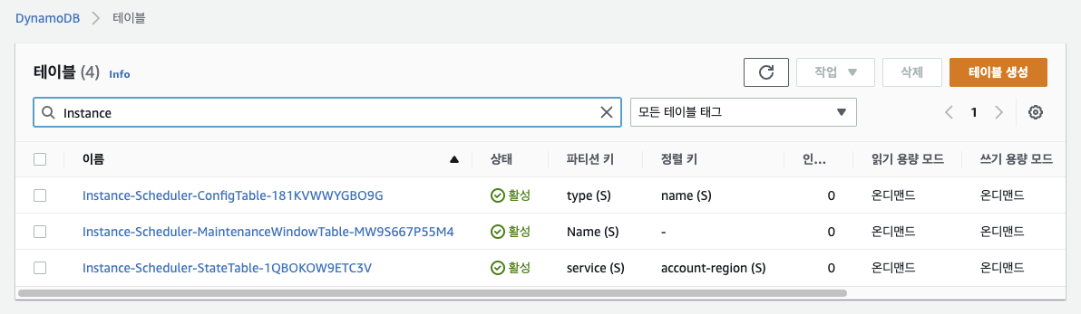 ㅁ 스택에 의해 생성되 DynamoDB 테이블