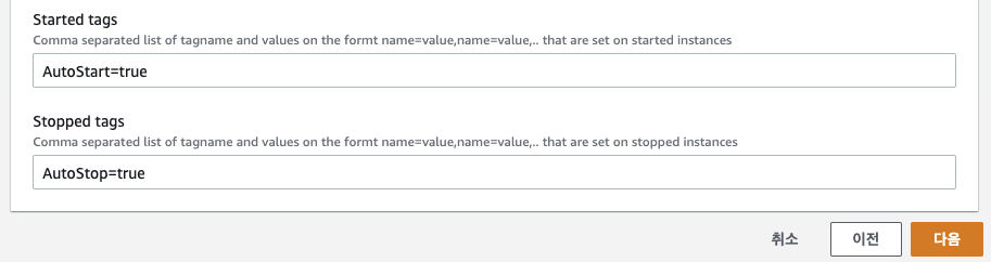 ㅇ RDS와 EC2에 태그만 추가하면 이를 간편하게 구현하기 위해 자동으로 끄고 켜지도록 되어 있다.