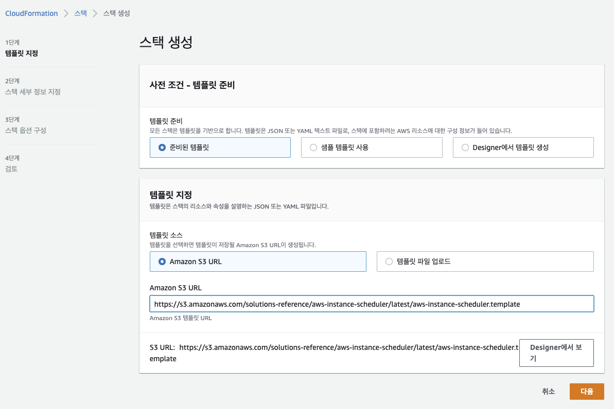 ㅇ 준비된 템플릿 > Amazon S3 URL을 선택