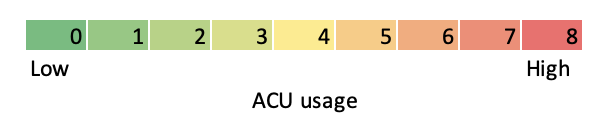 Aurora Serverless 용량은 ACU(Aurora Capacity Unit, Aurora 용량 단위)로 측정된다. 각 ACU는 약 2GiB(기비바이트)의 메모리, 해당 CPU, 네트워킹의 조합이다. Aurora Serverless v2를 사용하면 최소 0.5ACU 용량으로 시작할 수 있으며 지원되는 최대 용량은 128ACU이다. 또한 데이터베이스 용량이 워크로드 요구 사항에 거의 부합할 수 있도록 0.5ACU 단위로 용량을 미세하게 증분할 수 있다.