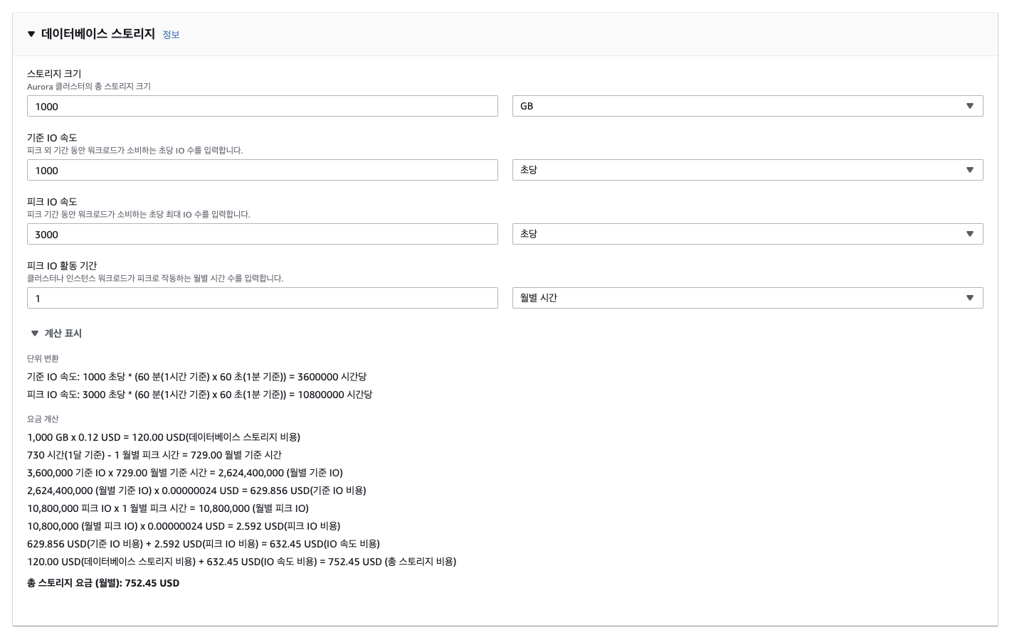 - 각 데이터베이스 선택에 해당하는 비용을 제공합니다(Aurora VS Aurora Servleress)