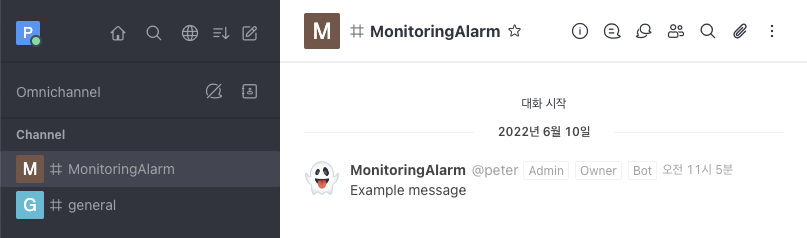 ㅇ #MonitoringAlarm 채널을 입력한다.