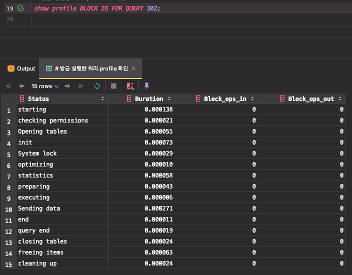 MySQL 에서 쿼리가 처리되는 동안 각 단계별 작업에 시간이 얼마나 걸렸는지 확인 할 수 있는 기능을 제공하며 쿼리 프로파일링(Query Profiling) 기능을 제공하고 있다. 쿼리 프로파일링(Query Profiling)는 MySQL 5.1 이상에서 부터 지원한다.