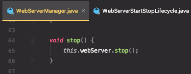 ㅇ 호출된 stop에서는 webServer가 중지 되면서 더 이상의 요청을 받지 않고 외부에서 연결할 수 없는 상태가 된다.