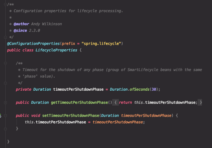 ㅇ spring.lifecycle.timeout-per-shutdown-phase의 기본 설정은 30초이다.
