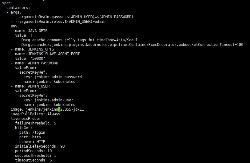 ㅇ image tag를 lts -> 2.355-jdk11로 수정한다.