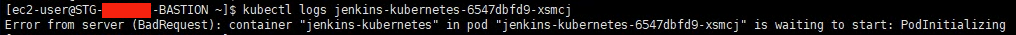 Error from server (BadRequest): container "jenkins-kubernetes" in pod "jenkins-kubernetes-6547dbfd9-xsmcj" is waiting to start: PodInitializing