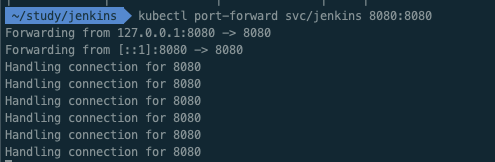 ㅇ minikube 환경이기 때문에 jenkins 접근을 위해 port-forward 를 사용해야한다.