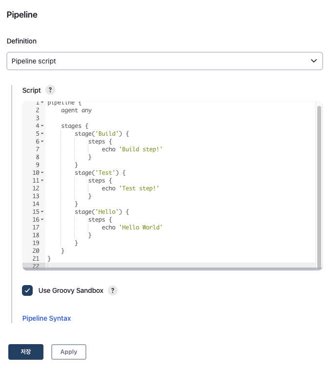 젠킨스 파이프라인 정리 - 1. 파이프라인 샘플 만들기
