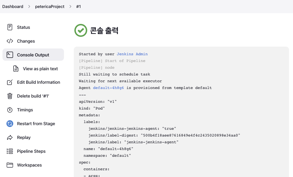 ㅇ 콘솔을 통해 빌드 과정을 확인할 수 있다.