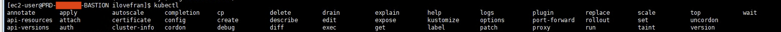 ㅇ kubectl 이후 탭키를 누르면 사용가능한 명령어 목록을 확인 할 수 있다.