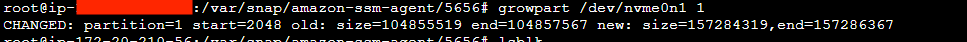 ㅇ growpart 명령을 사용하여 파티션을 확장합니다. 디바이스 이름과 파티션 번호 사이에 공백이 있다는 점에 유의하세요.