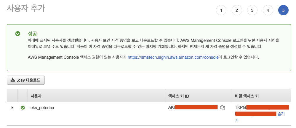 ㅇ EKS를 테스트 하기 위해 어드민 권한을 준 eks_peterica 계정을 생성하였다.