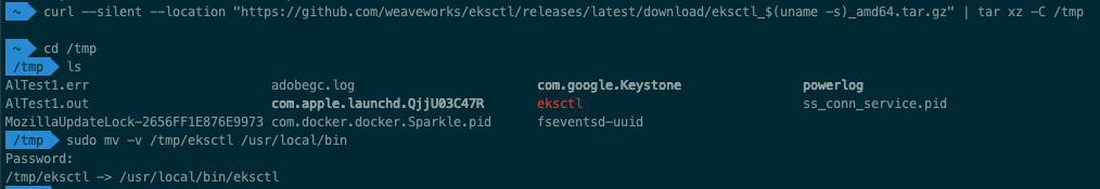 curl --silent --location "https://github.com/weaveworks/eksctl/releases/latest/download/eksctl_$(uname -s)_amd64.tar.gz" | tar xz -C /tmp