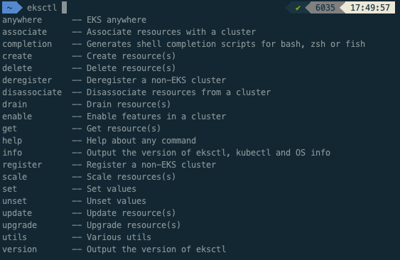 ㅇ eksctl 명령어 이후 탭을 누르면 사용가능한 명령어를 확인할 수 있다.