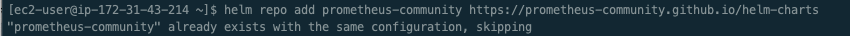 [ec2-user@ip-172-31-43-214 ~]$ helm repo add prometheus-community https://prometheus-community.github.io/helm-charts