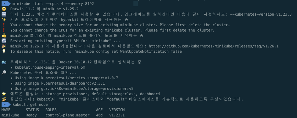 ㅇ cpu 4, memory 8GB로 minikube를 가동하였다.