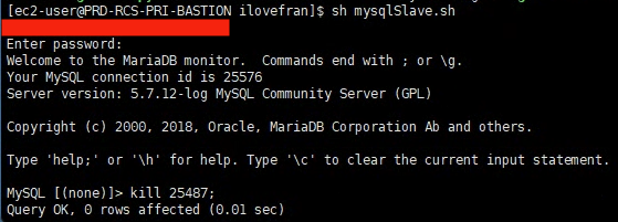 mysql -h prd-***-db.cluster-ro-***.ap-northeast-2.rds.amazonaws.com -u *** -p