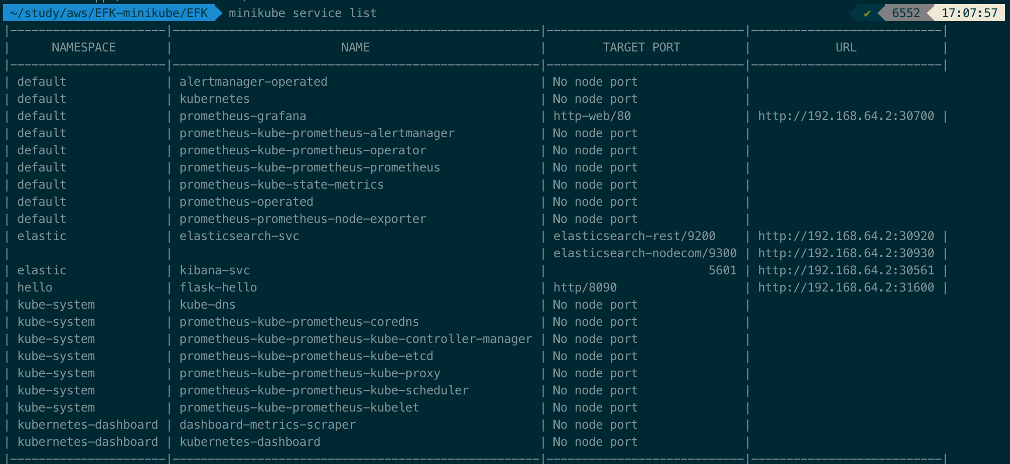 ~/study/aws/EFK-minikube/EFK > kubectl get all -n elastic