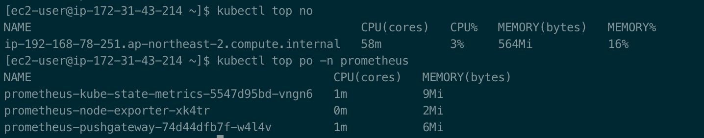 [ec2-user@ip-172-31-43-214 ~]$ kubectl top po -n prometheus