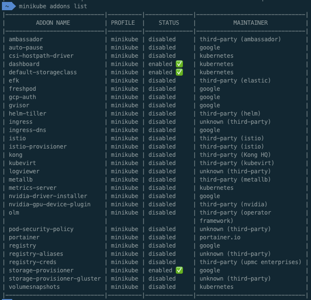 | storage-provisioner | minikube | enabled ✅ | google |