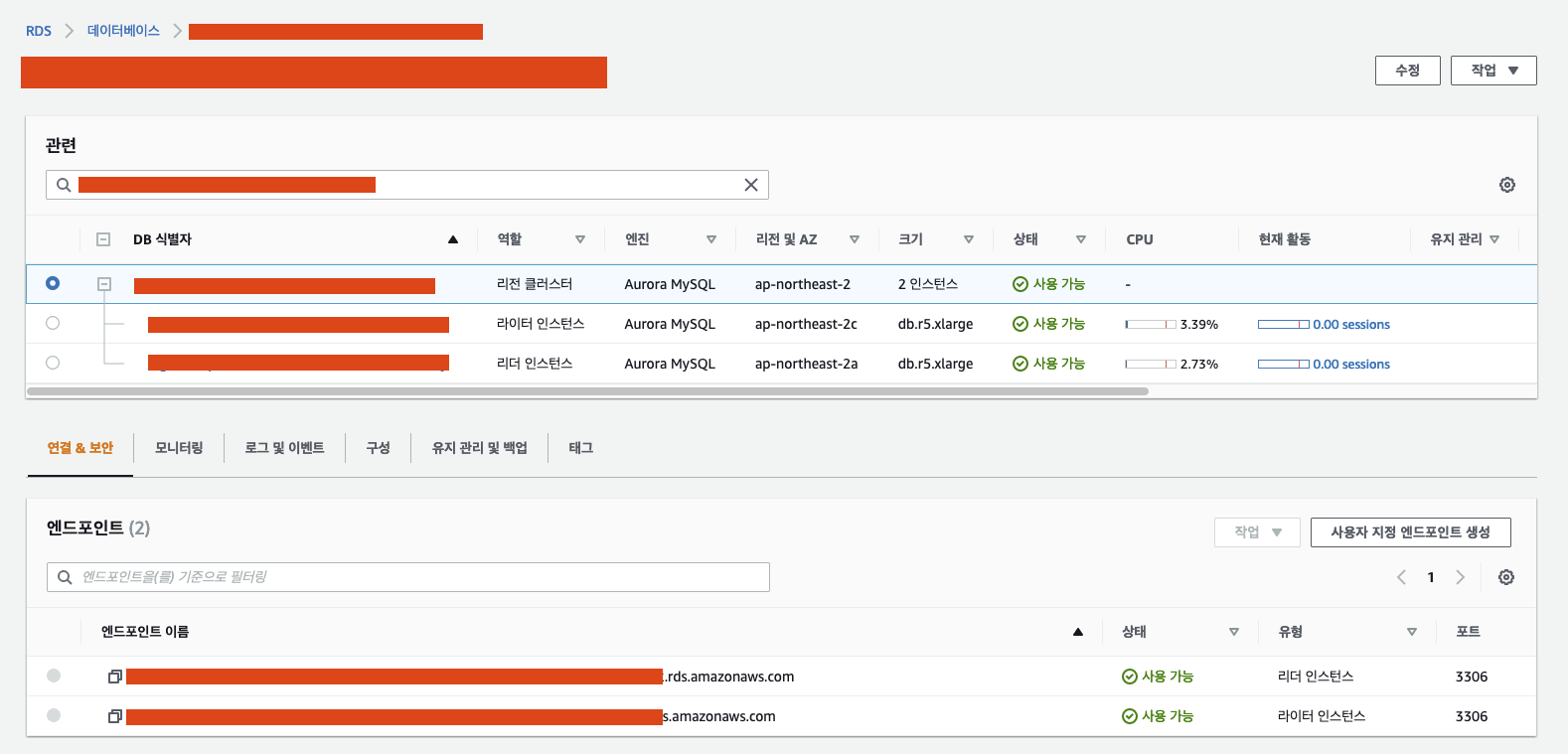 ㅇ 참고로 현재 라이터 인스턴스와 리더 인스턴스를 사용하고 있으며,