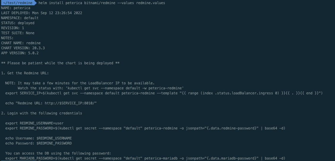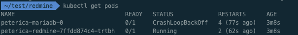 $ kubectl logs -f peterica-redmine-7ffdd874c4-ct5hm