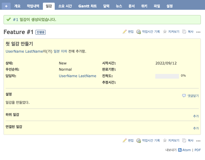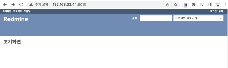 ㅇ 기본적인 MariaDB 구성을 위한 시간이 소요되었고 약 5분정도 후 redmine에 접속 할 수 있었다.