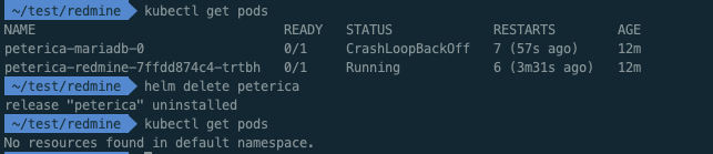 ㅇ 참고로 helm uninstall peterica 명령어도 동일하게 작동한다.