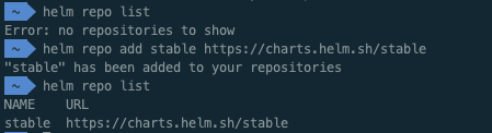 ㅇ https://charts.helm.sh/stable 저장소를 추가하였다.