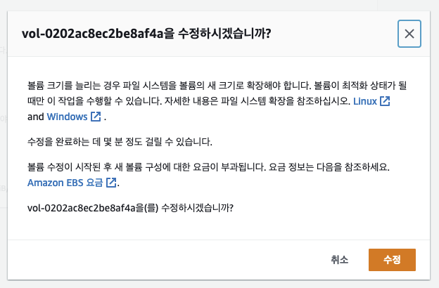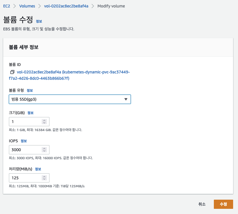 ㅇ AWS Console에서 gp2 볼륨을 gp3로 변경해 보았다.