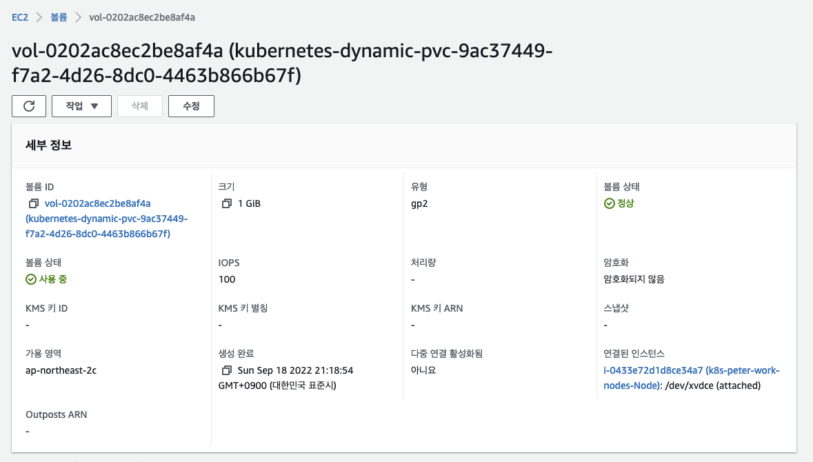 ㅇ 제약사항으로 AWS에는 gp3로 타임이 변경되었지만 쿠버네티스에서는 gp2이다.