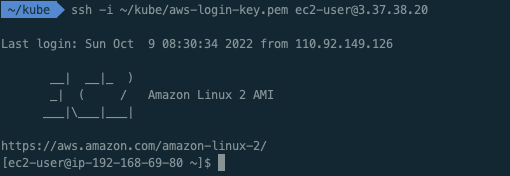 $ ssh -i ~/kube/aws-login-key.pem ec2-user@3.37.38.20
