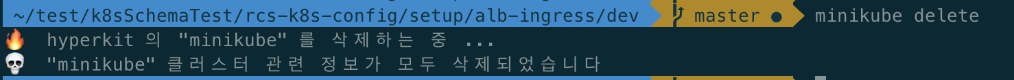 ㅇ minikube delete 명령어를 통해 minikube 클러스터를 삭제하였다.