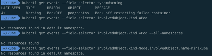 kubectl get events --field-selector involvedObject.kind=Node,involvedObject.name=minikube