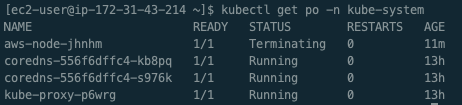 ㅇ 업그레이드가 진행될 때에 kube-system의 파드들이 교체되는 것을 확인 할 수 있다.